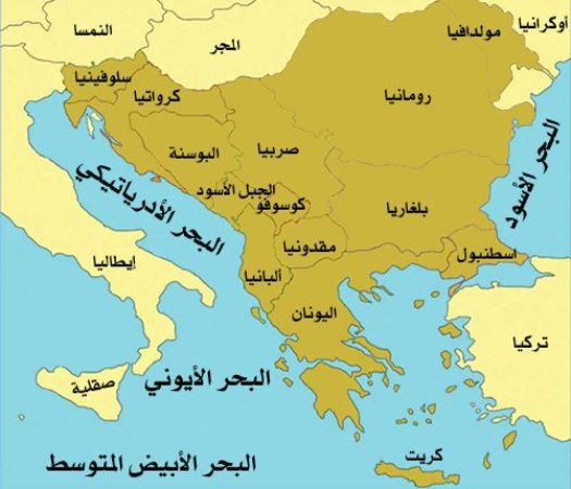 كوسوفو , البوسنة والهرسك , صربيا , سلوفينيا وكرواتيا , البانيا , الجزء الأوروبي من تركيا , الجبل الأسود , اليونان ,جمهورية مقدونيا , رومانيا . شاهد الخارطة :